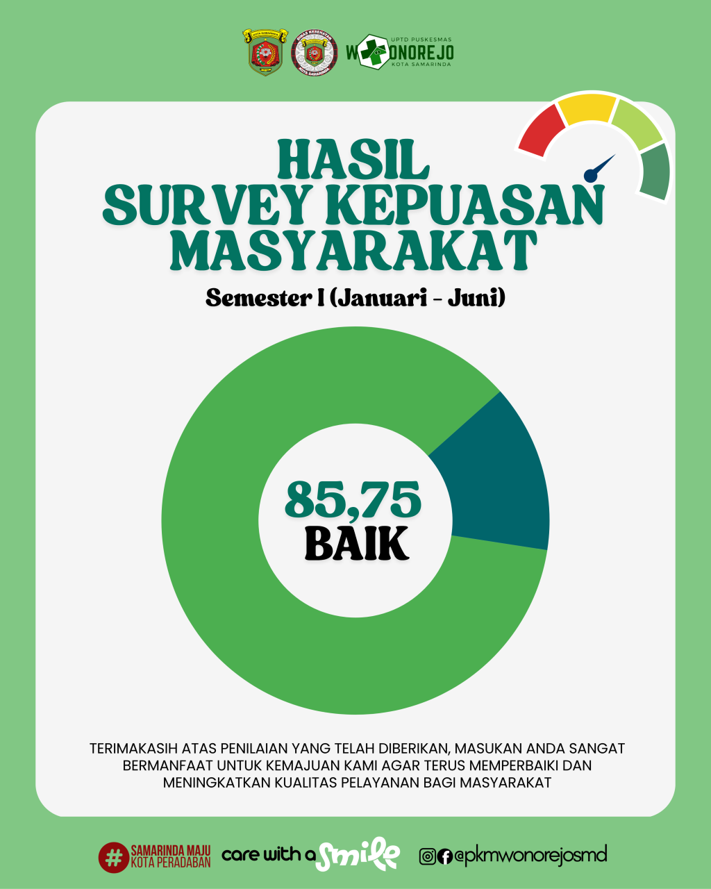 Hasil survei menunjukkan nilai 85,75 dengan kategori “Baik” 🌟